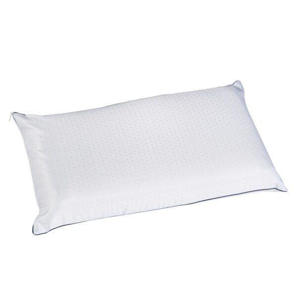 Almohada viscoelástica de firmeza baja que se adapta al cuerpo, garantizando la posición óptima de cabeza y cuello. Es hipoalergénica gracias a sus fundas de microfibra de poliéster y muy transpirable gracias a la malla 3D de una de sus caras.