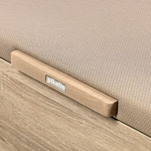 El canapé abatible de madera juvenil con apertura lateral Naturbox de Pikolin te permite tener un descanso confortable y placentero sin renunciar a un espacio de almacenamiento extra en tu dormitorio. Está compuesto por una tapa transpirable tapizada con tejido 3D que aporta ventilación al descanso. Para facilitar su apertura lateral y uso, cuenta con dos tiradores de madera maciza y un sistema de apertura lateral mediante amortiguadores neumáticos, que permiten un fácil acceso al interior desde todos los ángulos. La cubeta de éste canapé está compuesta por laminados de alta calidad y esquinas curvas de madera maciza, que permiten un embalaje de máxima calidad, robustez y resistencia con el cabecero, piecero y largueros de la cubeta de 22 mm de espesor.