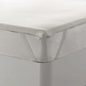 Dispone de un tejido inferior antideslizante y de unas gomas elásticas, que evitan su desplazamiento una vez colocado en el colchón.